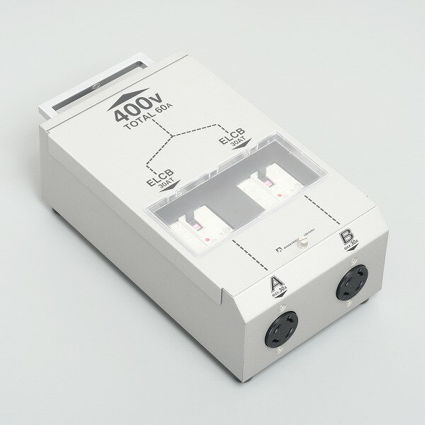 在庫状況:お取り寄せ(詳しくはこちらをクリック) ●画像は代表型番のイメージになります。型番通りの手配になりますので(色・形等)確認の上ご注文下さい。 60Aの入力で引掛形30Aの電源2ヶを供給することができる、鋼板製で移設が可能な分岐用コンセントボックスです。 さし込み口1個につき30Aまで、2個合計で60Aまで使用可能です。 それぞれのさし込み口に30A漏電ブレーカを設置したことにより、過負荷・短絡による過電流や漏電から接続した機器類を守ります。ブレーカの作動状態は、透明の確認用窓により目視でそのまま確認ができます。 底面にはゴム足が付いており、設置面が傷つくことを防ぎます。またコード挿入口側には、設置や移設の際に持ち運びをしやすくする取っ手が付いています。 100A幹線上にT型分岐用コネクタボディを設置し、組み合わせて使用することによって、100A幹線から直接30Aコンセントが2つ使用可能になります。 NEMA規格番号:出力:NEMA L15-30 色 :銀色 適用電線 :VCT/2PNCT 14mm2 電線接続方式:圧着端子式 適用圧着端子:R14-6 本体難燃性 :UL94 V-0 30A漏電ブレーカ×2ヶ付 RoHS2対応