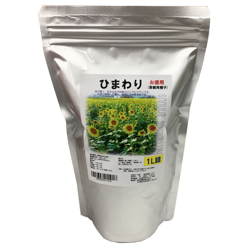 お届け先が沖縄・離島は、別途送料3300円(税込)が掛かります。予めご了承ください。切り花としてお楽しみ頂く際の育成方法肥料を与え過ぎると茎が太くなり、花瓶に挿せなくなってしまいます。肥料はほとんど与えず、植付幅も20cm程度に過密にして植えて頂くと茎が細長く育ちますので、切り花にしやすくなります。商品説明メーカー福花園種苗品種ロシア内容量1L播き時期目安4〜6月播種量目安約10ml/m2内容量の目安約3,500粒/L(容量保障ではありません)生産地中国福花園種苗 ひまわり種子(景観用ロシア系ひまわり) 1L草丈2m近くになる大型のヒマワリです。休耕田などの景観形成作物としても利用可能。群生させると迫力満点です。日当たりが良く、水はけの良い土壌を好みます。休耕田の場合は畝立てするなど、排水性の向上が必要です。播き時:発芽適温、生育適温ともに20℃以上と高温を好む花です。葉桜のころからタネまきします。ヒマワリは直根性(根が1本しか出ない)なので、移植は困難です。移植の際、根を切ったりすると枯れてしまったり、ポット内で根が回ったものを植えると草丈が出ません。目的の場所への“直播"を推奨します。播種直後には、鳥のエサにならないよう、鳥よけを施すと被害を軽減できます。