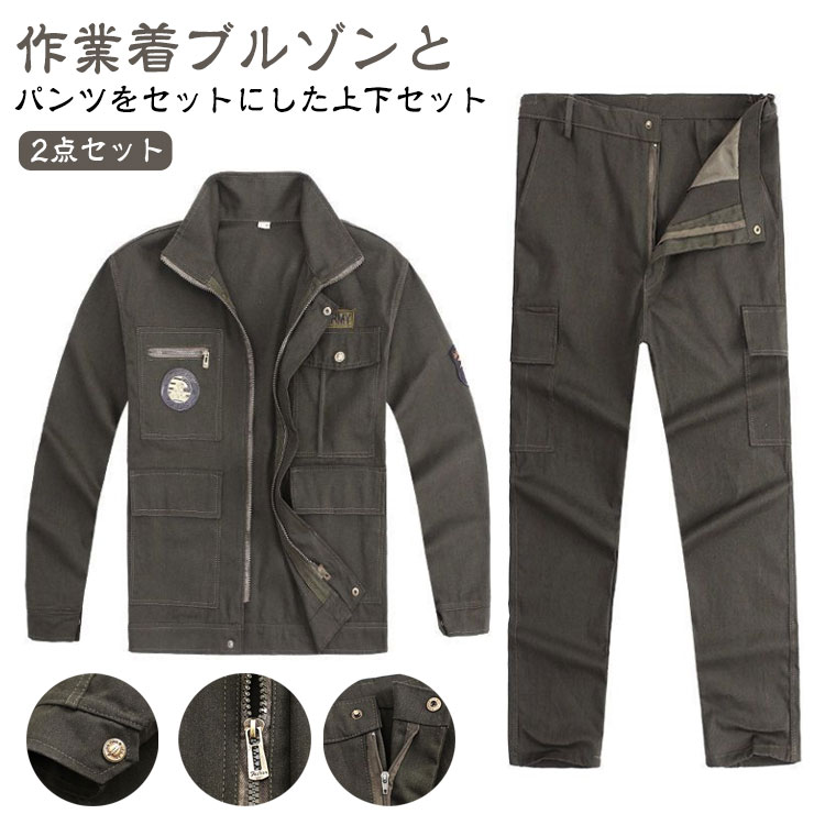 長袖 作業服 ワークウェア ジャンパー 作業パンツ 2点セット ミリタリージャケット 上下セット メンズ カーゴパンツ 作業着 おしゃれ 作業ブルゾン 作業服 かっこいい 丈夫 耐磨耗 ユニフォーム 制電 工場 工事 現場