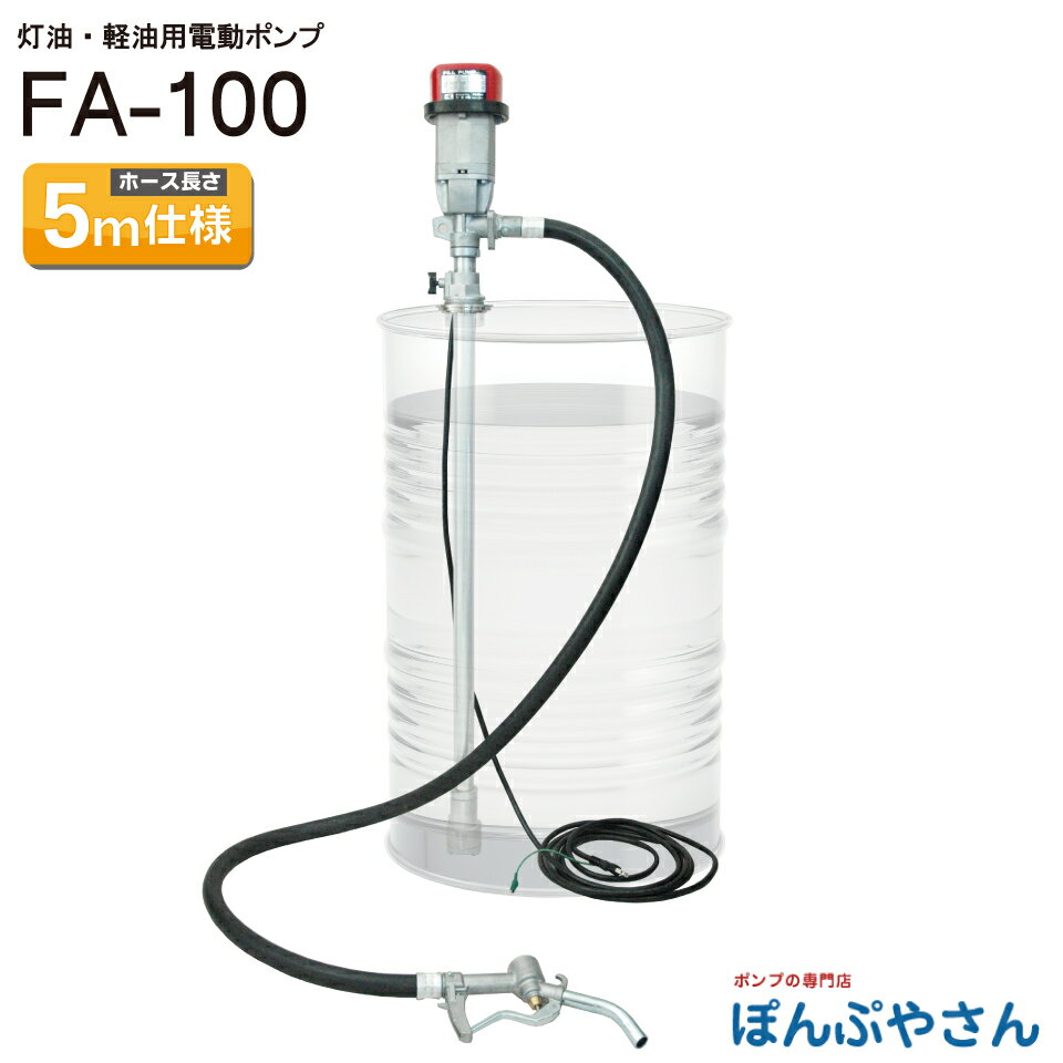 【2026年1月15日までポイント10倍】FA-100 ドラム缶用 電動 フィルポンプ 灯油 軽油用 工進 KOSHIN 耐油ゴムホース5m FA100