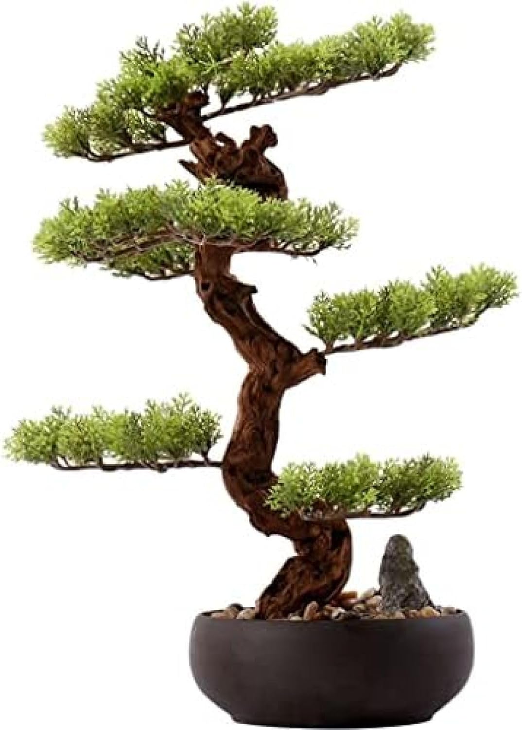 人工観葉植物 人工盆栽の松の木、19インチのフェイク鉢植えの植物の偽の木の鍋装飾品机の陳列、ホームオフィスの装飾のための日本の松の盆栽工場 人工盆栽