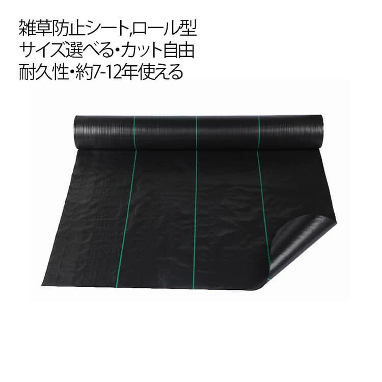 【日光を遮り】光を遮ることで光合成を抑え、最終的に雑草を絶やしていきます。除草剤を使わずに雑草の繁殖を防止します。水や空気、液体肥料を通すので植栽もできる防草シート(雑草防止シート)です。 除草剤に頼らないため、大切な庭木や花壇などの枯らしたくない植物に影響しません。安全性の高い雑草対策です。【UV剤入り】UV剤入りで紫外線による劣化を防ぐ事ができ、より長く使用可能です。 一度敷けば何度も草取りをする手間が省けます。耐用年数(約) 3年です。※※耐用年数は目安です。 環境や使用方法によって は短くなる場合もあります。【水、空気通す】水や空気、湿気を通し、土に影響を与えない。耐久性もあるのでどれにしようか迷っている方にはオススメです!【カット可能】目安ライン付き、ラインを合わせれば真っ直ぐにカット出来る! 家庭用のハサミでお好きなサイズに綺麗に切れますので、作業はとても簡単です。【適用場所】庭 家庭菜園 玄関 スロープ 砂利 庭木 勝手口 ウッドデッキ 空き地 公園 駐車場 外装工事 畑 屋上 ベランダなどでご利用できます。※梱包内容:防草シートのみ、固定杭や園芸シャベルなどは付属しておりません。※耐用年数は目安です。使用方法によっては短くなる場合もあります。※防草シートは多年生雑草の株・根、ササ・スギナ等の地下茎を完全に取り除いてから敷いてください。※使用環境によりカビやコケの発生防止効果が異なる場合があります。※商品改良のため、製品の仕様は予告なく変更することがあります。※注意事項:モニター発色の具合により、実物とは色合いが異なる場合がございます。※発送方法について:お届け先、個数によって配送情報に記載の配送業者とは異なる場合がございます。日本郵便、または佐川急便(配送方法はご指定頂けません)でお届けいたします。