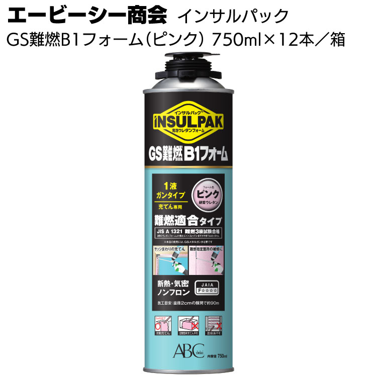 エービーシー商会 インサルパック GS難燃B1フォーム GS-B1P 750ml×12本<ピンク・簡易発泡硬質ウレタンフォーム>※専用ガンが必要【送料無料】