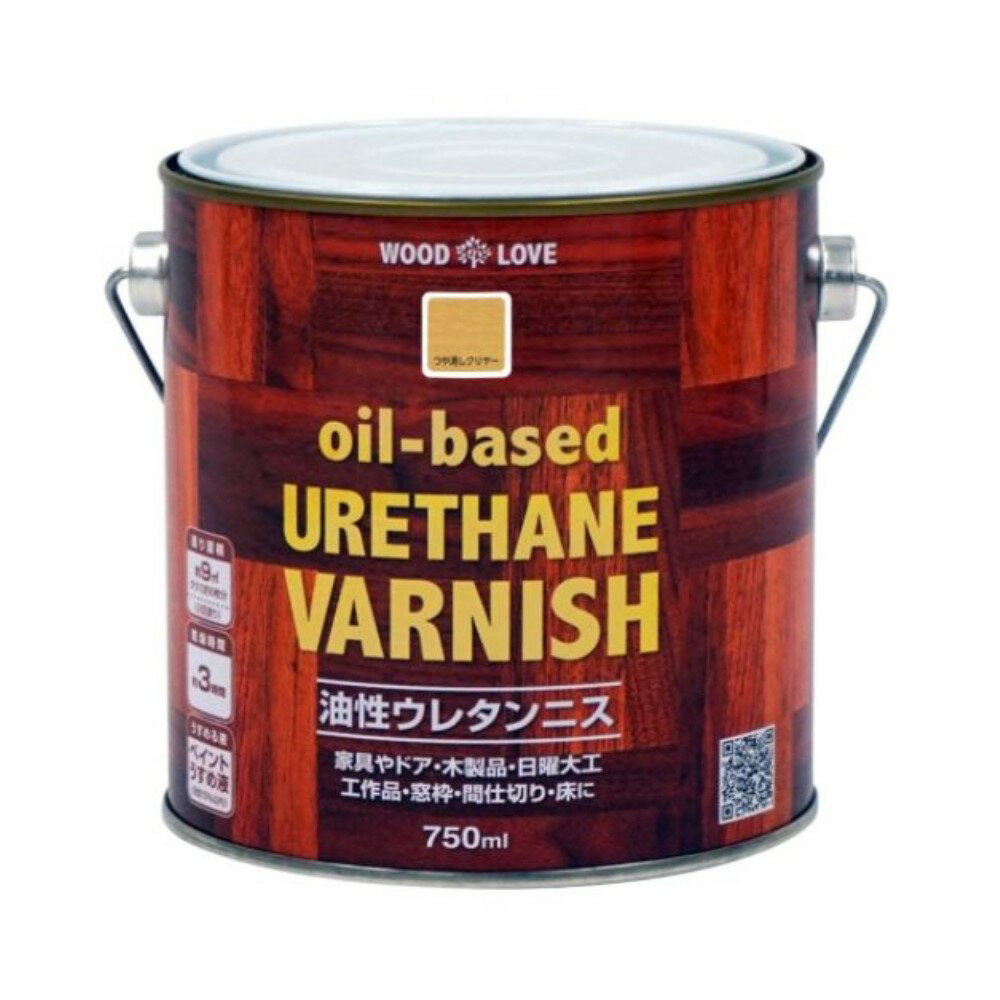 【商品説明】ニス 水性ウレタンニス 着色とニス塗りが同時にできる●家具やドア・木製品・日曜大工・工作品に。●屋内で使用する木製家具や工作品に。●においが少なく、塗りやすい水性塗料です。乾くと硬い塗膜ができ、実用的なものにも使えます。●着色とニス塗りが同時にでき、木目を生かした美しいつやに仕上がります。●容量750ml。塗り面積(2回塗り)約9m2(畳約6枚分)●乾燥時間20℃時:約1時間