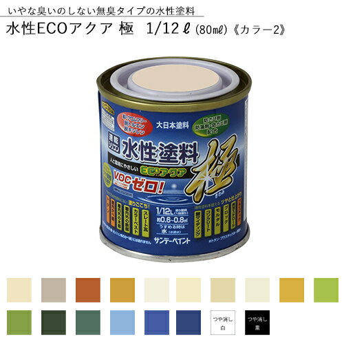 [ポイント最大15倍] サンデーペイント 水性ECOアクア 極 1 12L(80ml) 全38色中18色《カラー2》 水性多目的塗料 | ペンキ 塗料 diy ペイント 水性 リノベーション 塗装用品 壁 リメイク 水性塗料 塗る 屋内 屋外 リフォーム 木 鉄 塗装 コンクリート モルタル 外壁