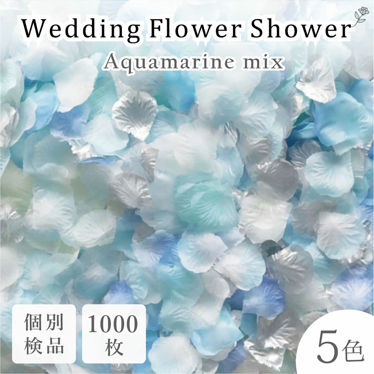 フラワーシャワー 約1000枚 ウェディング 造花 アクアマリン 5色MIX 花びら 水色 シルバー 圧縮 結婚式 ガーデン ビーチ ウェディング フラワーペタル 結婚式 フラワーペタル フォトウェディング 挙式 誕生日 撮影小物 撮影背景 大容量 たっぷり ボリューム感 【送料無料】