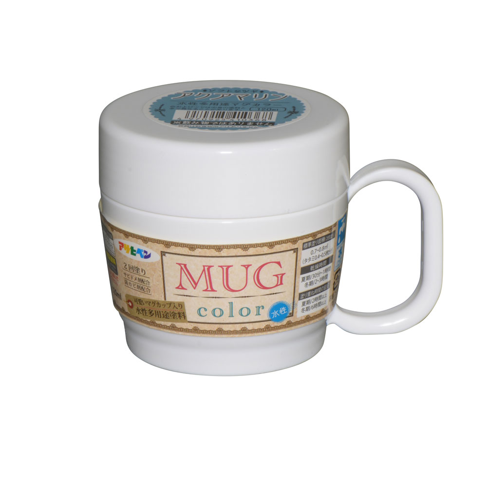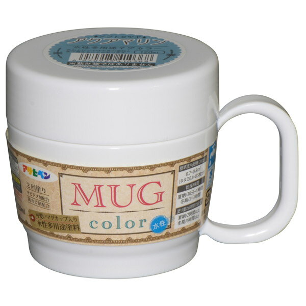 【用途】木部・鉄部・コンクリート発泡スチロール・アクリル等のプラスチック面などの塗装作業。【機能・特徴】マグカップが容器になるので、移し替える必要もなくそのまま使用できます。小物・壁面のワンポイントスケッチなどに最適です。容器が倒れにくく、取っ手がついているので持ちやすくて塗りやすいです。耐候性に優れています。においの少ない水性塗料です。【仕様】●内容量:120ml。●色:アクアマリン。●塗重ね目安:夏期2時間以上・冬期6時間以上。●乾燥時間:夏期30分〜1時間・冬期2〜3時間。●標準塗面積:0.7〜0.8m(畳0.4〜0.5枚)。●GHS表示:危険・遺伝性疾患のおそれ・水生生物に毒性。【材質】●容器:PP製。【送料について】北海道、沖縄、離島は送料を頂きます。