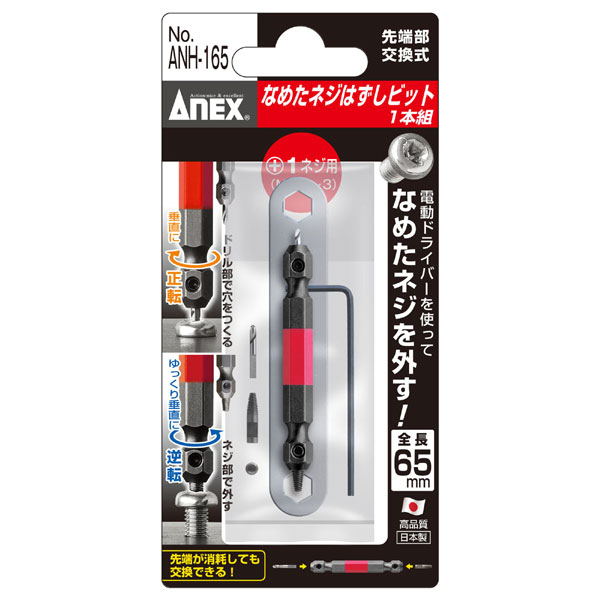 【メール便対応可能】☆ANEX/アネックス ANH-165 なめたネジはずしビット1本組 M2.5〜3ネジ対応 全長65mm コード(1019906)