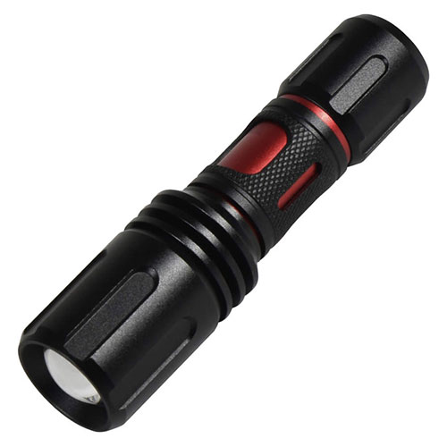 ワイドからスポットまで無段階フォーカス屋内・屋外兼用、充電式、LED懐中電灯です。明るさを無段階調節できます。光の到達距離100m(1Lx)・55m先で新聞が読めます。・仕様 : 屋内・屋外兼用(IPX7)/充電式・定格光束 : 2000lm・1m照度(Lx) : スポットブースト23470/H7415/L2430・バッテリー : リチウムイオン3.7V2.2Ah×2・バッテリー寿命 : 約300回・充電電源 : AC100/200V兼用(50/60Hz)・充電時間 : 5時間・連続点灯(時間) : スポット : ブースト10分/H2.5/L8.5・照射角 : スポット : 20度/ワイド : 80度・光源色 : 昼光色(6000K)・使用環境温度 : -10〜40℃・点灯パターン : ブースト・HIGH・LOW・SOS・点滅・サイズ : φ46×H209〜225mm・質量 : 400g・保証期間 : 1年間・生産国 : 中国※USB-ACアダプタは付属しておりません。※急速充電に対応していません。急速充電はしないでください。※USB-ACアダプタDC5V/2Aが別途必要です。(定格DC5V/2A以下をご用意ください。)(I)おまけつき(商品とは関係ありません)別送