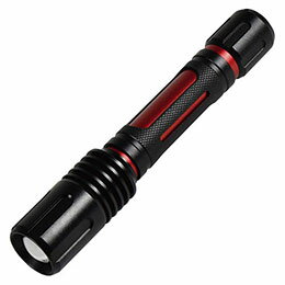 ワイドからスポットまで無段階フォーカス屋内・屋外兼用、電池式、LED懐中電灯です。 明るさを無段階調節できます。 光の到達距離40m(1Lx)・仕様 : 屋内・屋外兼用(IPX7) ・定格光束 : 300lm ・1m照度 : スポットHIGH…2070Lx/LOW…425Lx ・電源 : 単3アルカリ乾電池×2本(付属) ・連続点灯時間 : スポット…HIGH8時間 / LOW45時間 ・照射角 : スポット…20度/ワイド…80度 ・演色性 : Ra69 ・光源色 : 昼光色(6000K) ・使用環境温度 : -10〜40℃ ・球寿命 : 50000時間 ・点灯パターン : HIGH・LOW・点滅 ・サイズ : φ27×153〜164mm ・質量 : 140g ・保証期間 : 1年間 ・生産国 : 中国