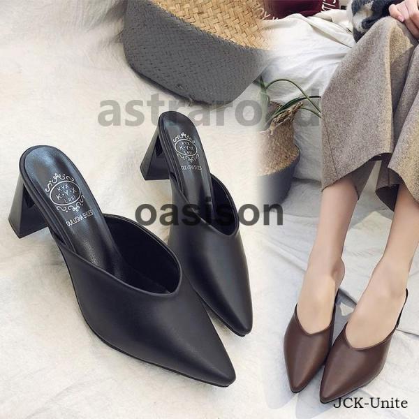 ローファー サンダル チャンキーヒール パンプス レディース ポインテッドトゥ 太ヒール7cm 踵なし ミュール オフィスサンダル スリッパ バブーシュ 美脚