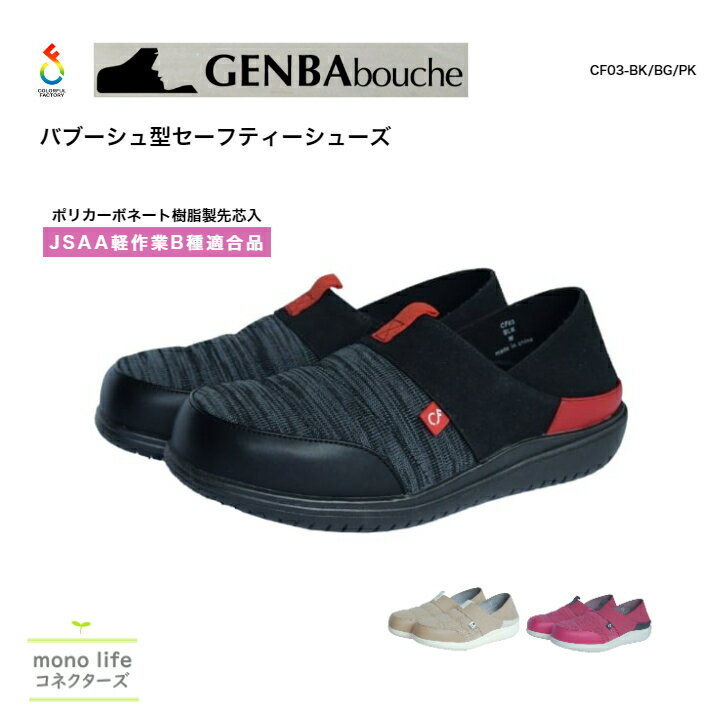 オーミヤ : ゲンバブーシュ CF03 カラフルファクトリー バブーシュ型セーフティーシューズ 樹脂製先芯入り JSAA軽作業B種適合品 脱ぎ履きしやすい
