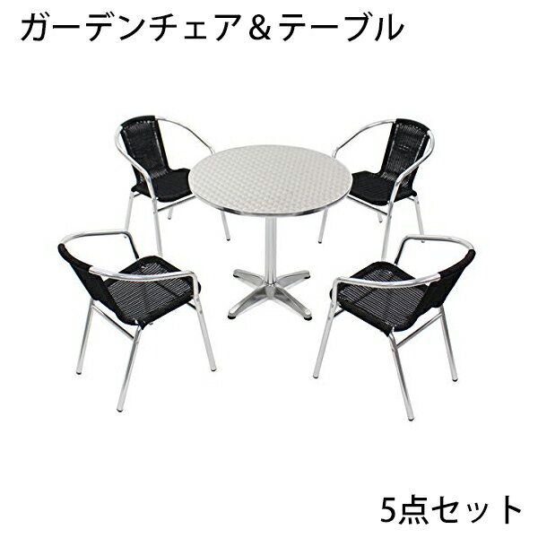 送料無料 ガーデン5点セット ガーデンテーブル5点セット ガーデンテーブルセット 人工ラタン アルミチェア ダイニングチェア ロビーチェア ガーデンチェア スタッキングチェア ビーチチェア スタッキング アウトドア リゾート ラタン (人工) ブラック L24BK L61 W80