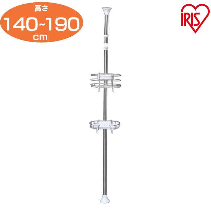浴室収納の不満を解消するバス用品をスッキリ収納できる突っ張りラックです♪サビに強いオールステンレス製です。ワイヤー仕様で水はけが良く衛生的なかご付きです!かごの高さを調節可能、タオルやスポンジを掛けるのに便利なフック付きです。石鹸等を置くのに便利な小物置きマット付きです。天井から浴槽のフチに突っ張れる、ユニットバスに最適なサイズです。●商品サイズ(cm)【本体】幅約22×奥行約17.8×高さ約140〜190※ヘッダー含まず(ヘッダー高50mm)【かご内寸】深型:幅約20.8×奥行約10.2×高さ約8.5浅型:幅約20.8×奥行約10.2×高さ約2.8●重量(kg)1.5●かご深型×1個、浅型×1個●フック4個●耐荷重量全体:6kgfかご(深型):3kgfかご(浅型):1kgfフック:0.5kgf●材質ポール:ステンレス樹脂部:ABS、PP、ポリプロピレンかご:ステンレス◇◆こちらもおススメ◆◇ ・ステンレスワイヤーバスケット ミドル アイリスオーヤマ ・ステンレスワイヤーバスケット ワイド アイリスオーヤマ ・ステンレスワイヤーバスケット 浅型 アイリスオーヤマ ・浴室突張りラック BLT-19 アイリスオーヤマ ・浴室突張りラック BLT-25 アイリスオーヤマ ・ステンレス浴室突張りラック BLT-19S アイリスオーヤマ ・ステンレス浴室突張りラック BLT-25S アイリスオーヤマ ・メタルラックキャスター ストッパー無 アイリスオーヤマ ・メタルラックキャスター ストッパー付 アイリスオーヤマ ・メタルラック大型キャスター ストッパー無 アイリスオーヤマ ・メタルラック大型キャスター ストッパー付 アイリスオーヤマ 最強翌日配送対象商品に関するご案内 最強翌日配送対象商品・対象地域に該当する場合は最強翌日配送マークがご注文カゴ近くに表示されます。 最強翌日配送可能なお支払方法は【クレジットカード、代金引換、全額ポイント支払い】のみとなります。 下記の場合は最強翌日配送対象外となります。 ・15点以上ご購入いただいた場合 ・時間指定がある場合 ・ご注文時備考欄にご記入がある場合 ・決済処理にお時間を頂戴する場合 ・郵便番号や住所に誤りがある場合 ・最強翌日配送対象外の商品とご一緒にご注文いただいた場合 ・お届け先住所文字数が40文字以上の場合★LINE 公式アカウント★お友達追加でお得な情報GET!お友達になる≫