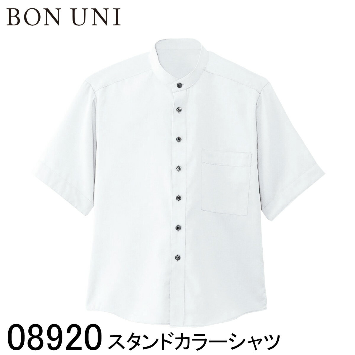 【ボストン商会】 【BON UNI ボンユニ】 ステンドカラーシャツ 08923-08 SS~3L 白 ホワイト 半袖 男女兼用 おしゃれ レストラン 飲食店 カフェ 厨房 キッチン 制服 ユニフォーム