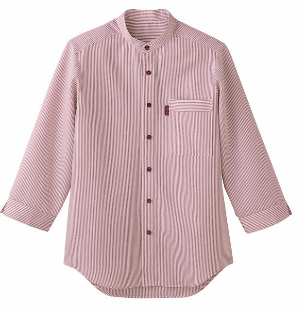 シャツ(七分袖・男女兼用) 【ボストン商会 ボンユニ BON UNI】 飲食店制服 カフェ レストラン スタンドカラーシャツ 七分袖シャツ ストライプ ユニフォーム 男女兼用 34301 3色展開
