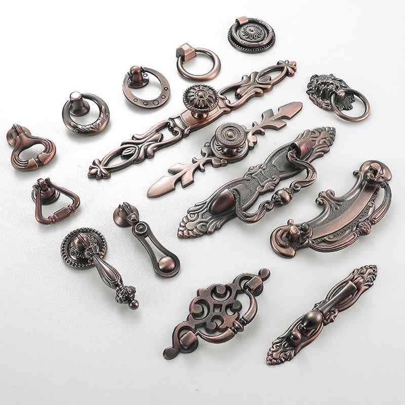取っ手 ヨーロピアン クラシック アンティーク風 亜鉛合金 キャビネット 戸棚 ワードローブ 食器棚 ナイトテーブル 引き出し ドロワー ハンドル つまみ レッドブロンズ グリーンブロンズ