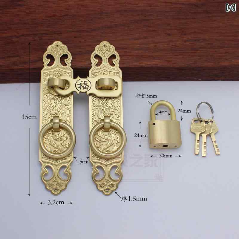 取っ手 真鍮製 キャビネット 本棚 扉用 中国風 両開きドア 鍵付き 引き手 龍模様 彫刻 厚手 重厚感 レトロ クラシック 真鍮 アンティークブロンズ