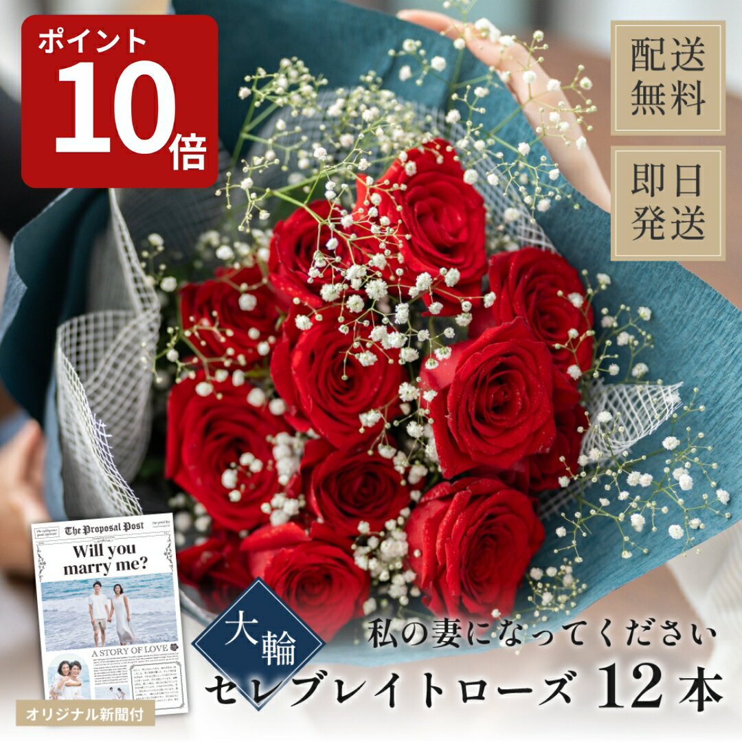 大輪セレブレイトローズ12本 「私の妻になってください」 - 特別な日の特別な贈り物 ラメ 生花 オリジナル新聞 付き プロポーズ 結婚 誕生日 記念日 ギフト 花 バラ かすみそう コロンビア産バラ おしゃれ プレゼント 贈り物 ザワウ 誕生日プレゼント 女友達