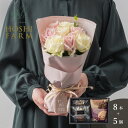 ホシファーム フリルブーケ ホワイトピンク8本&ホテルオークラ ケーキ&ブラウニー&クッキーアソート 5個【送料無料】<メッセージカード無料! プレゼント ギフト お取り寄せ オリジナルメッセージ可! 花 スイーツ バラ 薔薇 ローズ 花束 白 焼菓子>