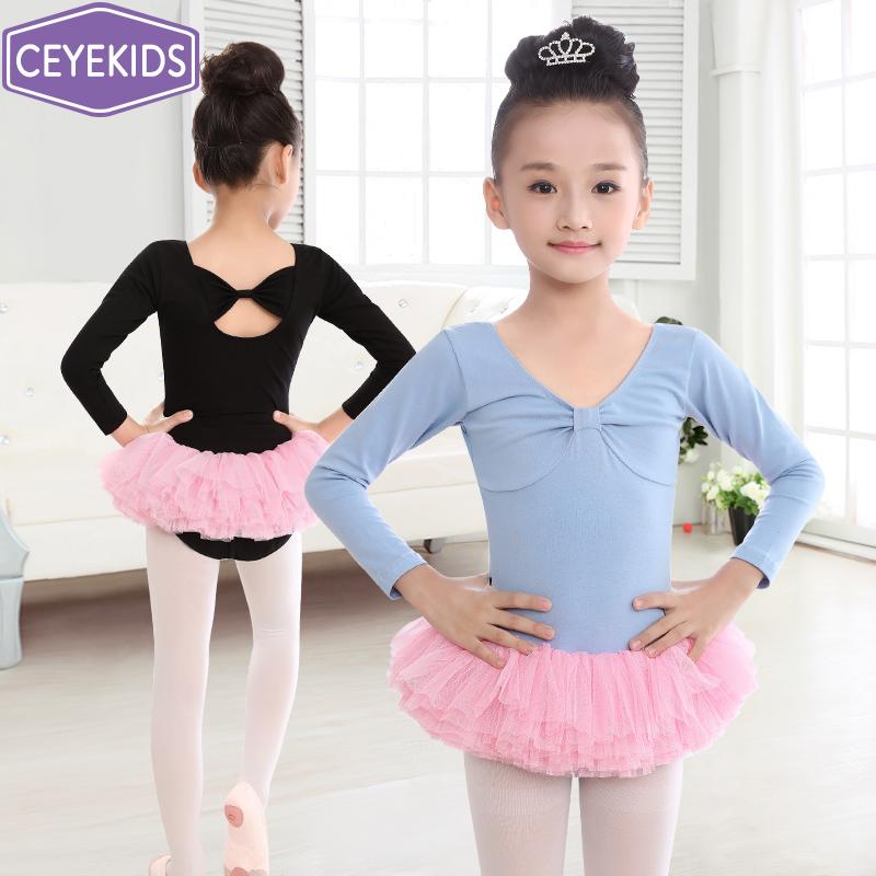 キッズ 女の子 バレエ レオタード 長袖 春秋 練習着 レッスンウェア 発表会 コンクール ダンス 体操 女の子用 綿 ポリウレタン 伸縮性 ソフト 通気性 ブルー ピンク ブラック イエロー