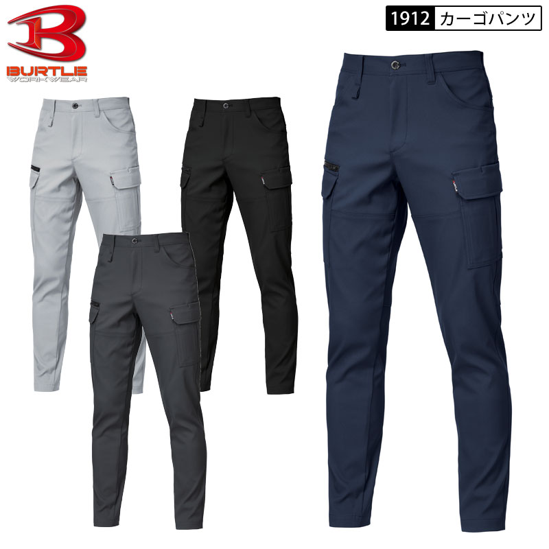 バートル BURTLE 1912 カーゴパンツ ウエストゴム S-5L 4色展開 クレイジー ストレッチ テーパード 男女ユニセックス カーゴ 作業ズボン ズボン