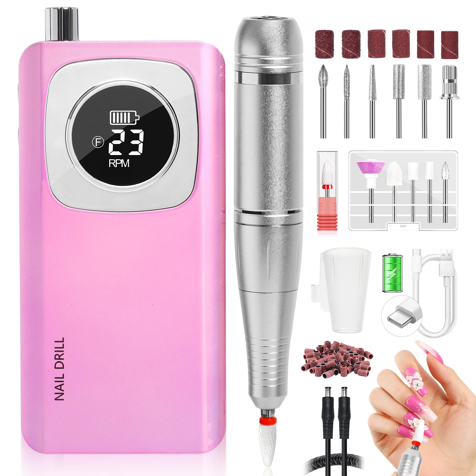 商品情報商品の説明主な仕様 最大45000RPM:Saviland 電動ネイルドリルは、最大45000RPMに達するブラシ付きDCモーターを搭載しており、より安定した可変速度制御を提供し、硬いアクリルネイルを簡単に取り除くことができます。最高速度でも低発熱、低騒音、低振動で動作し、自宅やサロンで快適なネイルケアとアート体験を提供します。充電式:Saviland 電動ネイルドリルは、Type-Cケーブルを使用して3時間で完全に充電されるの大容量バッテリーを搭載しており、最大8時間の連続使用が可能です。高度なディスプレイには、回転方向、リアルタイムの速度、バッテリーレベルが表示され、操作中に設定を調整しやすくなります。使いやすい:Saviland 電動ネイルドリルは、一時停止、方向変更、速度調整用の3つのコントロールボタンを使用して操作します。本体のノブを回して速度を調整し、本体の横にある対応するボタンを押して操作を一時停止したり、回転方向を選択したりできます。ネイルドリルビットのフルセット:Saviland 電動ネイルドリルには、セラミックコーンビット1個、金属ビット6個、サンディングビット5個、サンディングバンド26個が含まれています。天然アクリルネイル、ジェルポリッシュ、ディップパウダーネイル、カルス、キューティクルなどの研磨、彫刻、切断、研磨、除去など、さまざまな作業に最適です。外出先での使用に便利:SAVILAND電動ネイルドリルは、ベルトに簡単に取り付けられる背面のクリップを備えており、便利な操作が可能で、手を自由にして柔軟に動かすことができます。軽量ボディで、旅行中やアウトドア活動中など、外出先でのマニキュアに最適です。