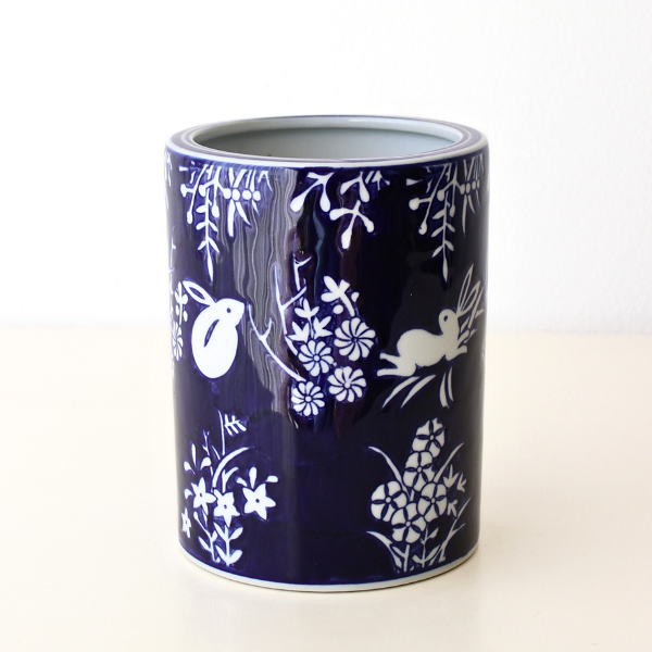 小さな火鉢 深みのある藍色が目を惹く 青花の鉢カバーは どこか懐かしく、落ち着いた佇まい 和モダンな雰囲気は 洋の空間にもすっとなじむデザインで グリーンの瑞々しさを引き立て 飾る植物を主役にしてくれそう 軽やかに描かれたうさぎと草花のモチーフは どこか物語を感じさせるやさしく愛らしい表情で グリーンと合わせると空間がふっと和らぐ印象に。 手あぶり火鉢、ワインクーラー、小物入れ めだかの飼育にもオススメです 商品詳細 商品名 陶器の鉢カバー 藍兎 商品番号 swa5215 全体のサイズ(cm) 直径15×高さ20 内径 12 材質 陶器 重量 2kg 生産国 中国 ※サイズ・重量はおおよその値です 一つずつ手作業での生産につき多少の違いはご了承ください - 備考 - 底穴は開いていません 製造工程上出来る、色抜けやムラ、釉薬の欠けやヨレ、混入物等が見られます 底面にざらつきが見られる場合があります。テーブル等への擦り傷にご注意ください ディスプレイによる色の違いはご了承下さい - その他のデザインはこちら - 陶器の鉢カバー蛸唐草 >> 「鉢・プランター」はこちら >> 「こだわりギギらいふ」はこちら深みのある藍が目を惹く 陶器青花の鉢カバー 全体のサイズ(cm)直径15×高さ20 うさぎと草花のモチーフは どこか物語を感じさせる やさしく愛らしい表情 製造工程上出来る 色抜けやムラ、釉薬の欠けやヨレ 混入物等が見られます