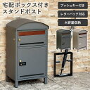 宅配ボックス ポスト付き 一戸建て用 宅配ボックス付ポスト【 Lino リーノ 】 2段 自宅用 ダイヤル ロック 錠 おしゃれ 一体型 置き型 ポスト 大容量 スタンドポスト 宅配ポスト 郵便ポスト 自宅用 モダン 北欧 グレー ベージュ 木目