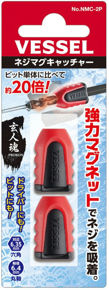 電動・油圧・空圧工具 ドライバービット -------------------------------------メーカー名(株)ベッセルプラス名称 VESSEL商品名VESSEL ネジマグキャッチャー No.NMC−2P(2個)型式NMC2Pメーカー希望小売価格【税抜】open(税抜)オレンジブック2026年 6 0856ページ発注コード810-6963JANコード4907587347251特長●ビットやドライバーに取り付けると強力な磁力で着磁できます。●強力マグネットでロングコーススレッドもしっかりキャッチします。●着磁・脱磁が可能です。●ビットから取外しても磁力は残っています。●切粉の付着が気になるときは脱磁して使えます。用途●ビットの着磁・脱磁に。仕様●全長(mm):27●色:レッド●適応サイズ(mm):丸軸φ6.4、六角対辺6.35●厚さ(mm):15●幅(mm):17●パック入数(個):2●適合サイズ(mm):丸軸φ6.4、六角対辺6.35●2個組材質●樹脂、ネオジウムマグネットセット内容/付属品注意●完全に磁力を抜くことはできません。●軸径6mm未満の丸軸電動用ビットにはご使用いただけません。原産国中国重量11G納期目安当日〜2営業日以内に発送 ※欠品時別途連絡