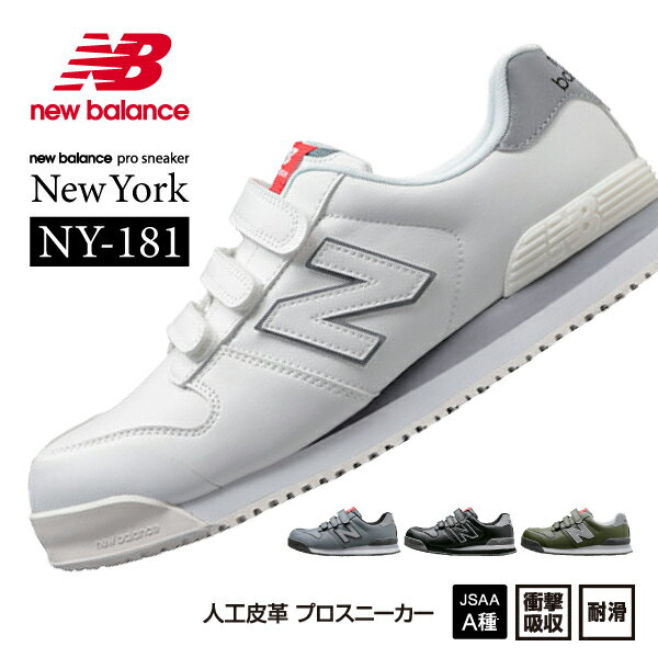 ニューバランス 安全靴 NY-181 NewYork ローカット ベルトタイプ JSAA規格 A種 人工皮革製プロスニーカー 作業靴 ワーキングシューズ 送料無料 New Balance ホワイト