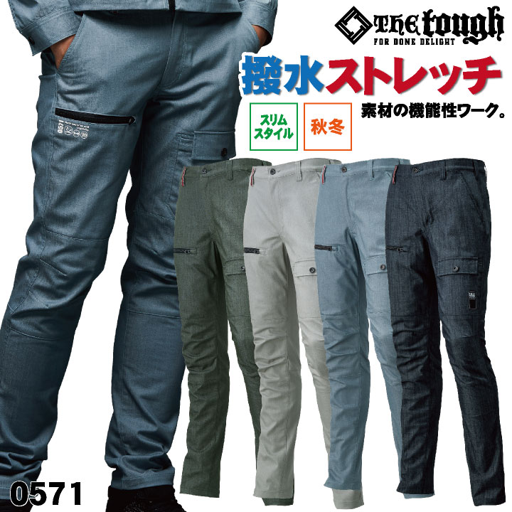 【期間限定10%OFF】作業着 カーゴ パンツ The tough ストレッチ 撥水 スリム アタックベース 秋冬 カーゴパンツ at-0571