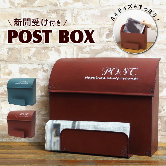 ※ラッピングについて、詳しくはこちら ▼商品名▼ メタルポストボックス ▼商品説明▼ 新聞受けが一緒になったアイアン製の郵便ポスト。 大きなサイズ、上開きの投函口で カタログや回覧板、A4サイズも簡単に出し入れOK! 壁掛け・据え置き、どちらでも設置できます。 錆加工、塗装のムラやキズによる アンティーク仕上げで玄関先をおしゃれに演出します。 おうちのエクステリアの1つにどうぞ♪ ※ご注意 お使いの端末やモニター環境により、 素材感や色合いの表現が異なって見える場合があります。 予めご了承ください。★メタルポストボックス レッド★ 新聞も郵便物もおしゃれに収納!アンティーク調のデザインが玄関のワンポイントに♪ ・Spec 商品名 ポストボックススタンド 素材 アイアン サイズ 【新聞受け部分】 w約23cm×d約5.5cm×h約7.5cm 【ボックス】 w約35cm×d約11cm×h約31cm 重さ 約1.4kg 備考 塗装ムラ・擦れ、歪み、サビなどアンティーク風の加工が施されています。 サイズや表情に若干の個体差がございます。 雨の直接かからない ポーチ部分でご使用ください。 壁にとりつける際は、落下防止・壁への不要な傷を避けるため、 壁面の材質や強度のご確認をお願いします。 底面に穴はありません。 ※フタの開閉のため、壁から少し隙間を開けて設置してください。 ※鍵・ネジは付属しておりません。 詳しくはこちら
