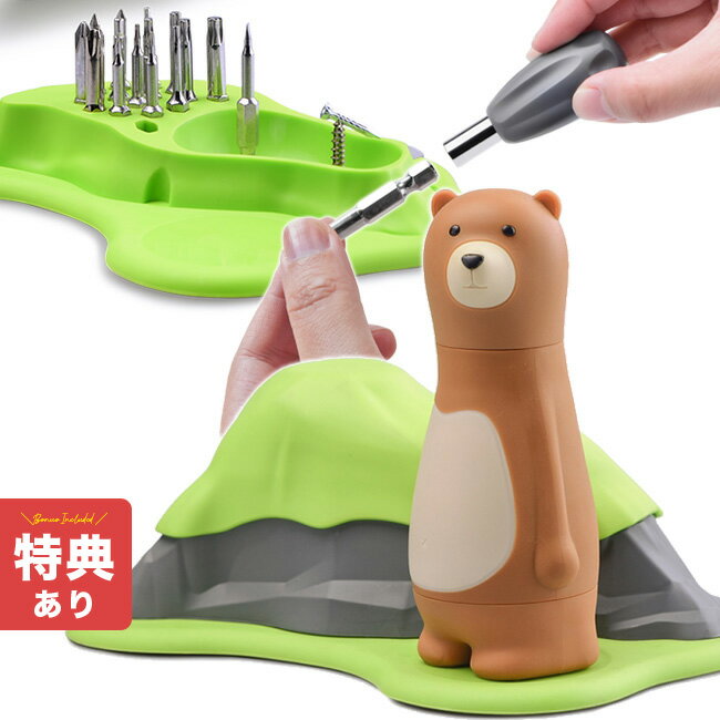 【特典あり】Bear Papa アニマルドライバー ベアパパ&多機能ツールボックス[ラチェット ドライバー セット ビット 小型 コンパクト くま かわいい デザイン ドライバーセット 工具 工具セット ラチェットドライバー DIY 組立て 道具 ツール おしゃれ]
