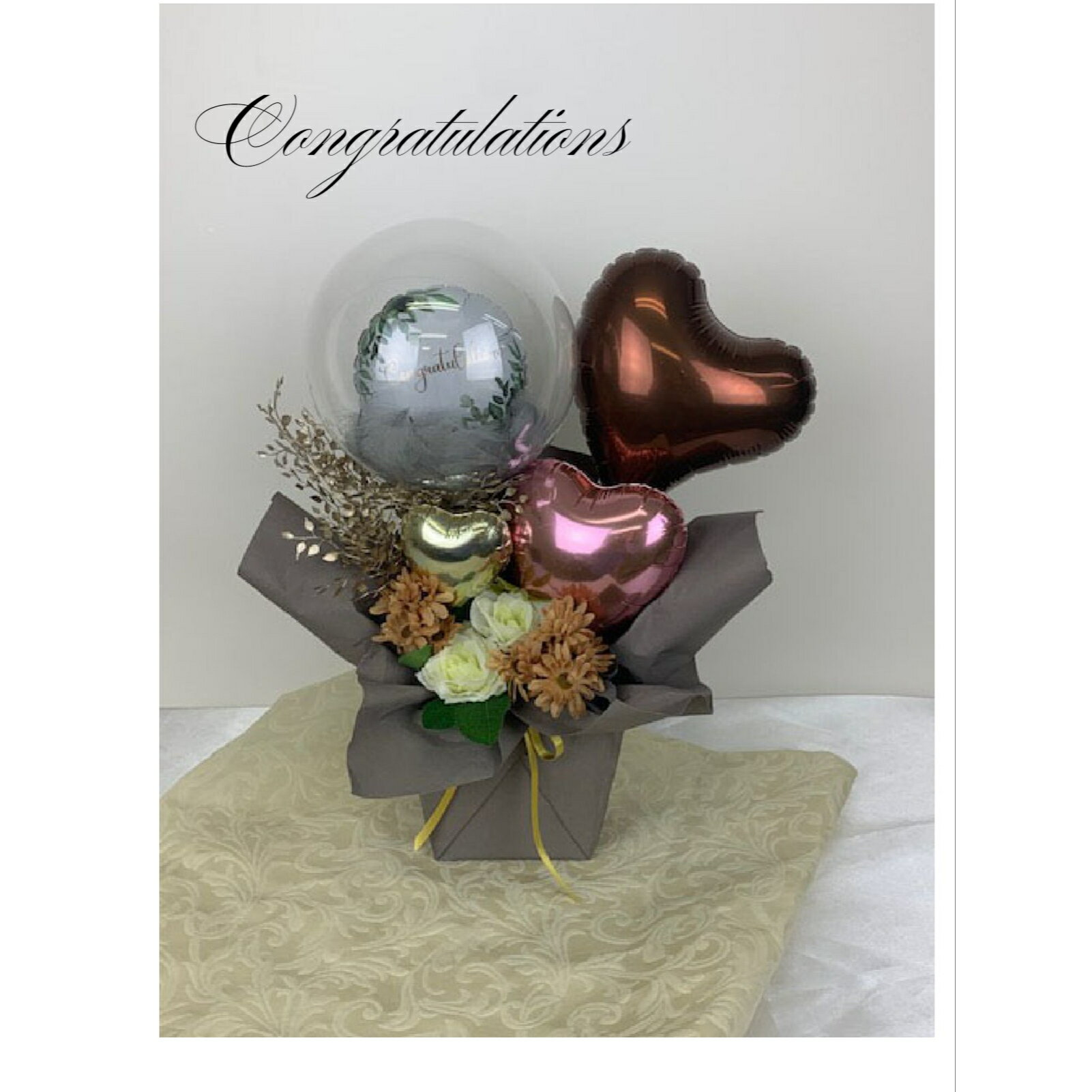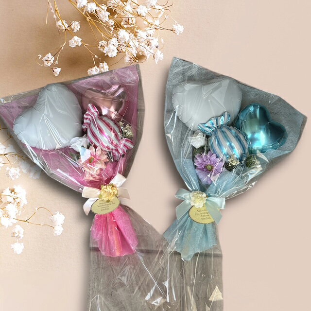 フェアリーバルーンバンチ 造花とバルーン 花束オプション200円にバルーンにお名前印字承ります