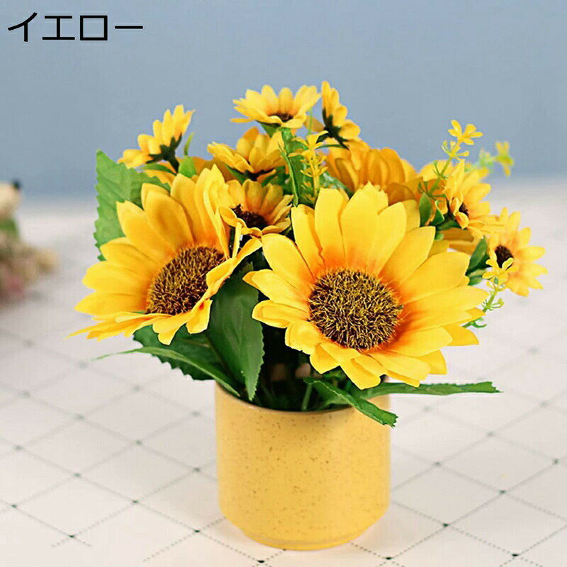 ひまわり 造花 向日葵 ins風 明るい セラミック花瓶付き ミニ 小さい 枯れない花 花束 観葉植物 ブーケ 鉢植え 盆栽 インテリア 室内 部屋 喫茶店 パーティー 置ける 飾る ギフト プレゼント おしゃれ 15cm