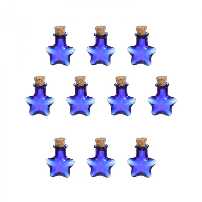 10個 ミニガラスボトルペンダント 0.01oz/0.5ml 星形 小さなガラス瓶 コルクストッパー付き 願い ボトル DIYクラフトパーティーウェディングデコレーション お気に入り ブルー