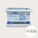 【セール】和鉢 盆栽鉢 中国鉢 (広東省梅州製) [980-0735] 呉須染付鉢 皿付 ミニ盆栽 植木鉢 和風 磁器 (サイズ 横11.5×奥行8.5×高さ7.5cm)