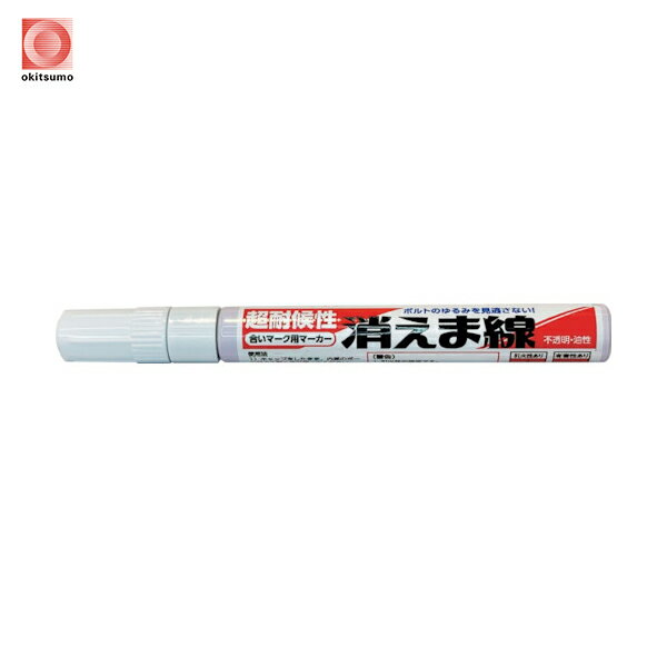 >商品名:Okitsumo 消えま線 白Okitsumo コードNo: KIEMASEN SIROオレンジブック発注コード:377-7424JANコード: 4953464651614>●耐候性が抜群で、描いた線や文字が消えません。●屋外曝露5年相当の促進耐候試験後でも線の認識が可能です。●屋外曝露5年相当の促進耐候試験後の色差がΔE7.3です。●国土交通省NETIS登録品です。●登録番号:CB-220008-VE>●合いマーク用。>●色:白●容量(ml):8.7●筆記線幅(mm):1.0〜2.0>->●容器:アルミ>->●火気のあるとこでは使用しないでください。