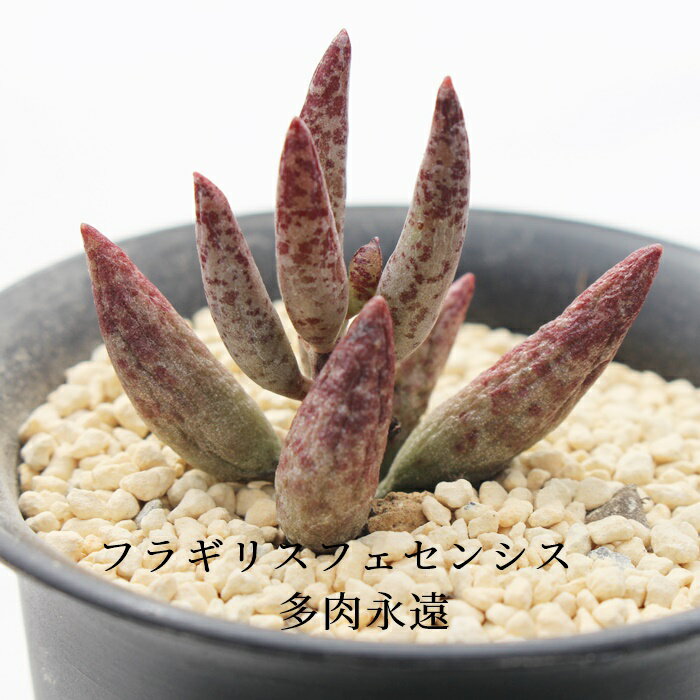 【 商品詳細 】 ■サイズ 5.5cmポット ■お届け ビニールポットまたは抜き苗でのお届けです ■植物の名前 付箋にてお渡ししております ■同一梱包目安 60サイズ2寸5.5cmポット約12個まで同梱可能です 背丈のある植物が入る場合は8個〜9個目安です ■植物に関して 画像は見本となります。 植物ですので四季折々の変化を魅せます。 紅葉は人間が進められるものではありません。 薄れた色合いの場合は日々移り行く紅葉を お楽しみいただけますと幸いです。 注意事項を必ずご一読ください。 【 配送方法 】 4種郵便または宅配便 *日にち指定対応不可の商品です。 【 おすすめポイント♪ 】 つや消しのプックラ葉が可愛いフラギリスフェセンシス。 紋が全体に入り、美しい。緑の葉は黄色く色づき魅了します。 購入時注意点 アドロミスクスは葉が大変落ちやすい品種です。 梱包、配送面に十分注意しお届けさせていただきますが、ご了承くださいませ。 また、葉がほとんど落ちてしまってもこちらの属種は返品・交換対象外の属種です。 あわせてご了承のほど、お買い求めください。 商品到着の際に葉が落ちていましたら葉ざしを行ってください。簡単に葉ざしが成功する品種です。 【 お世話カード 】 育て方が不安やプレゼントにしても安心なケアカード(別途100yen税抜)もございます 植物について・・・ Succulents はじめに 写真の多肉植物は見本です。お選びする多肉植物はご注文を頂いてから美しい植物を厳選し、配送させていただいております。植物ですので個体差はございます。植物苗は工場製品とは違い育成・成長に相当な年月を要します。 この為ある程度の傷等不具合はご了承願います。既製品ではなく日々生育していく植物です。 植物の形・姿にこだわりをお持ちのお客様は弊社栽培場での購入をお勧めいたします。 到着時、葉にみられる茶色いシミは鉄分によるものです。植物には支障はございませんのでご安心くださいませ。 水道水でお水を与えていれば自然と消えていきます。 また、用土内に混入されている白い粒々は薬です。害虫予防のための薬ですのでご安心くださいませ。 日にち指定について 多肉植物のご注文は日にち指定をお受けできません。予めご了承ください。 大きさについて 鉢の大きさを明記してございます。必ずご確認頂きます様お願いいたします。 ラッピングについて ギフト用に有料ラッピングをお受けしております 在庫について 自社サイトでの販売、栽培場での販売を共有しているため、 在庫切れの場合はやむをえずご注文をキャンセルさせていただく場合もございます 多肉永遠では自社栽培を行っております。一年を通し常に繁殖をしておりますが 十分な在庫を確保していても植物の為、天候に左右されたり、人気商品の大量買いの場合もあり、 急な欠品・在庫切れの状態に陥る場合もございます。 「在庫あり」でも欠品している場合もございます。予めご了承くださいませ。 納品書について エコ活動推進の為、納品書の発行をしておりません。ギフト用でもそのままご本人様にもお受け取り頂けます 商品が到着したら・・・ HOW TO CARE 置き場所 商品到着後すぐに開封してください。半日陰の場所へ置いてあげてくださいね。 春〜秋は太陽たっぷり当たる窓辺へ。夏は西日を避けたや東窓がお勧めです。 冬は太陽光が入る明るめの窓際がお勧めです。 西日が強い場所はなるべく避けてください。 水やり 到着後、3〜5日経ってからたっぷりと与えてください。根が落ち着き環境に慣れます。 配送の際に苗の崩れ予防でお水を与えている場合もございます。 お水は鉢の中が完全に乾いてからすぐに与えましょう。 紅葉時期 多肉植物の一番美しい時期は春と秋・冬です。春から秋は成長期になり仔を出して殖えます。 夏は遮光率を上げて半日蔭で過ごすため色味は緑色になります。 日々の管理 高温多湿を嫌うので通風良く促しましょう。 多肉植物は 屋内:一年中お楽しみいただけます 屋外:一年を通し戸外で楽しめます