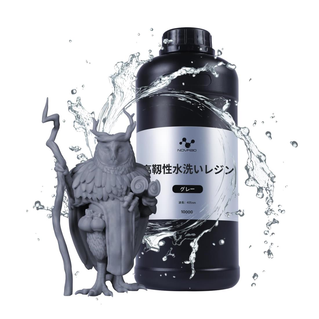 NOVA3D 水洗いレジン 水洗いメカレジン 高靱性水洗いレジン【高精度+高硬度+耐衝撃性+優れた切削性+穴開け可能】光造形3Dプリンター用レジン Photosensitive resin 405nm LCD SLA 1000g グレー