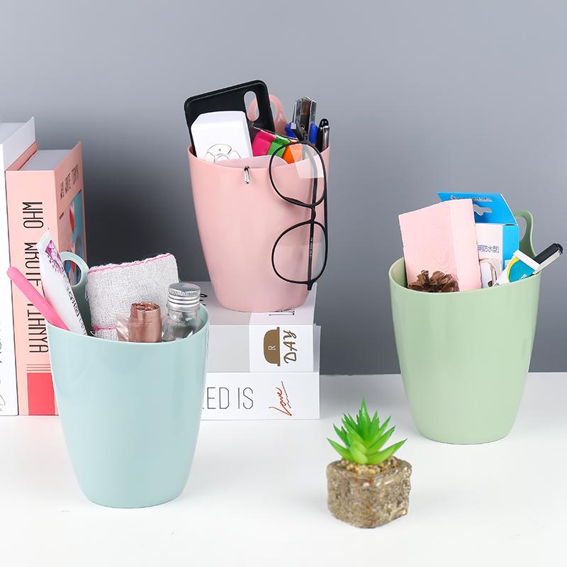 卓上収納 ミニ ゴミ箱 かわいい 吊り下げ式 デスク ダストボックス 小型 学習机 オフィス 寮 ベッドサイド 小物入れ プラスチック製 省スペース 丸型 北欧カラー