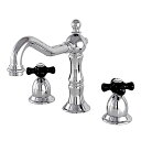 【中古】【未使用・未開封品】(Polished Chrome) - Kingston Brass KB1971PX Heritage Widespread Lavatory Faucet with Porcelain Cross Handle, Polished Chrome
