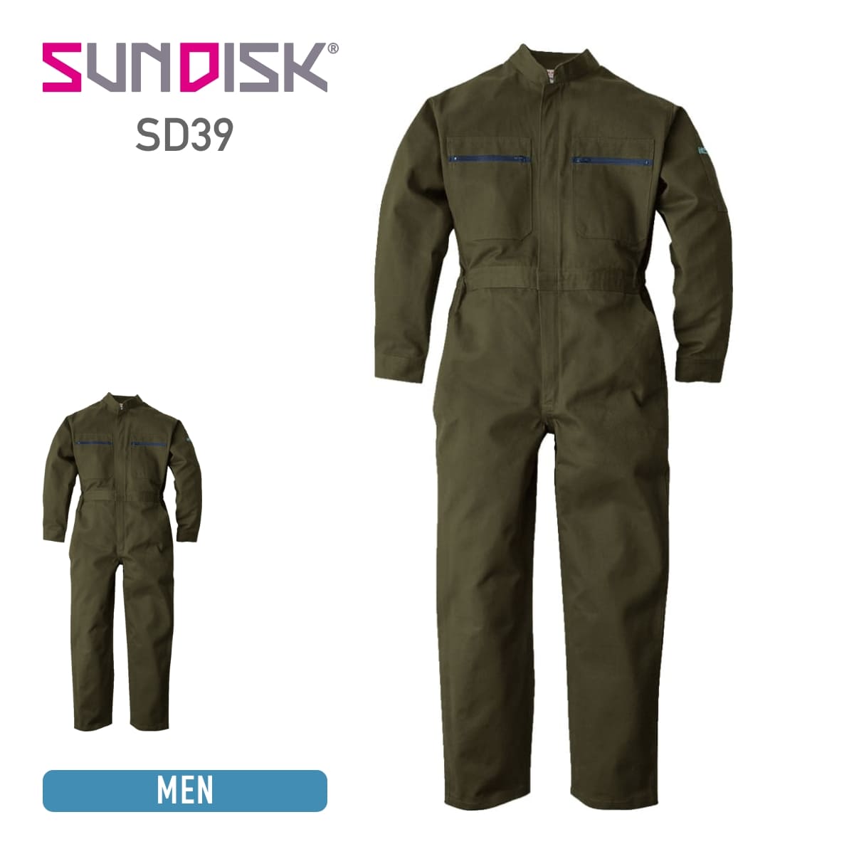 ツナギ 無地 SUNDISK サンディスク SD39 長袖 年間作業服 オールシーズン つなぎ 続服 ユニセックス 男女兼用 メンズ レディーズ 男性 女性 大きいサイズ 作業着 作業服 仕事 仕事着 ワークウェア ユニフォーム 制服 綿 コットン S M L LL XL 3L 4L 5L 6L