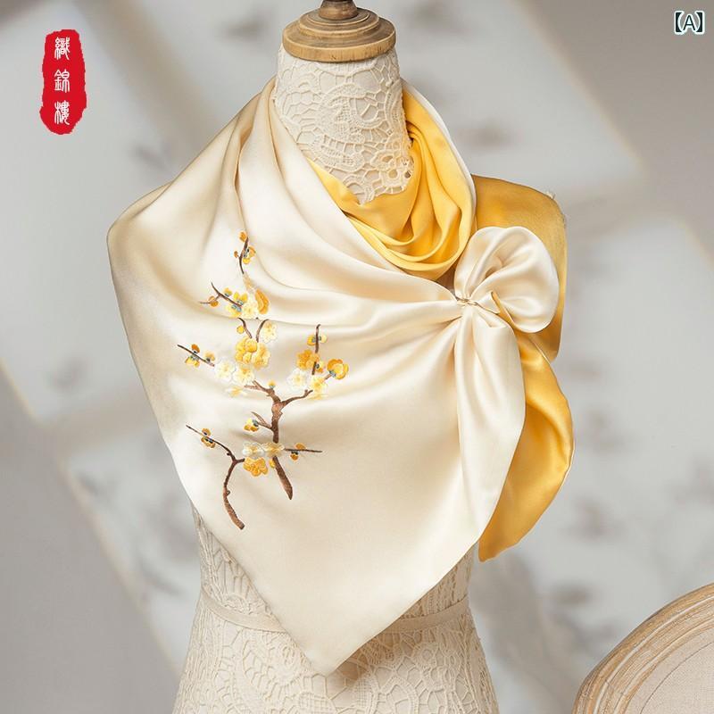 スカーフ レディース 蘇州刺繍 刺繡 ショール ストール 大判 ロング 長方形 多機能 植物柄 花柄 ミセス シニア
