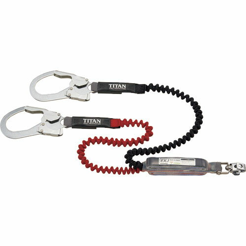 タイタン EXJ伸縮ストラップ式 タイプ1ランヤード ブラック/レッド ダブル (墜落制止用器具) ( HL-ERW-130 ) サンコー(株)