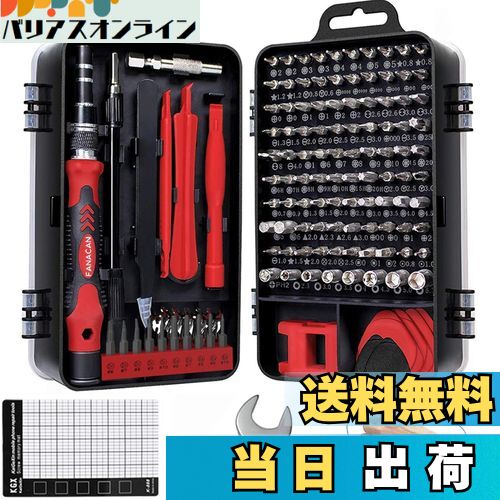 商品情報商品の説明主な仕様 【多種多様な機器に対応】115個のビットと15種類の工具、20個の精密ネジを備えた完全な精密ドライバーセットで、多様な機種の分解・修理に対応可能です。 iPhone, MacBook, iPad, Nintendo Switch, PS4, PS5, Xbox, PC, コンピューター,メガネ, 時計, タブレット, スマートフォン, パソコンなど、様々な機器を簡単に修理できます。br【必要な工具が一式揃った修理キット】この精密ドライバーセットには、豊富なツールが含まれています。ピンセットやSIM取り出しピン、スクリーン分離ピックなど、細かな作業に必要な道具が充実しています。また、マグネタイザー(磁力回復)や吸着カップ、ビット変換用アダプター、ケースオープナー、磁気シートなどの便利なアイテムも付属しています。これらのアイテムを使うことで、修理作業やDIY作業がより簡単になります。さらに、全てを収納できる専用のケースも付属しており、持ち運びにも便利です。これらの付属品が充実した精密ドライバーセットをぜひご利用ください。br【高品質な磁気ドライバーで、作業がよりスムーズに】高品質な製造技術によって作られており、使い勝手にこだわった設計が施されています。回転キャップを備えており、長時間の作業でも手首を痛めずに簡単に操作が可能です。また、滑り止め設計が施されているため、手にしっかりとフィットし、滑り落ちる心配がありません。さらに、長さ調整可能な延長シャフトが付属しているため、狭い場所や深い場所にあるネジも簡単に取り外すことができます。磁気ドライバーも備わっており、ネジを確実に保持し、作業効率を高めます。さらに、フレキシブルシャフトを使えば、非常に細かな場所でも作業が可能です。この精密ドライバーは、DIYや修理作業に欠かせないアイテムです。br【電動ドライバーにも対応し、多用途に使える高品質ビット】クロムバナジウム鋼ビットを採用しています、この素材は高硬度かつ高耐久性を持ち、壊れにくいため、長期間使用することができます。また、CNC精密加工によって高精度な仕上がりを実現し、防錆処理を施しているため、錆びにくく、長期間使用することができます。さらに、ビットは電動ドライバーにも装着可能で、幅広い用途に対応することができます。付属の変換アダプターによって、使用範囲を拡大することもできます。br【3年間の品質保証】当商品は、長期にわたりご愛用いただけるよう、3年間の品質保証が付いております。もし万が一、商品に品質問題が発生した場合は、返金や新品交換の対応をさせていただきますので、お客様にはご安心いただけます。我々は、お客様に最高品質の商品を提供するために全力を尽くしております。 # 【送料無料】FANACAN 160in1 精密ドライバーセット 磁気ドライバー トルクス マイナス 三角 六角 プラス 星型 y字ドライバー 特殊ネジ対応 工具セット 日常生活の中で、家電製品やガジェットの取り扱いが増える一方で、修理やメンテナンスに困った経験はありませんか?特に、精密機器の修理は正しい道具がないと手間がかかり、不安も増しますよね。この悩みには共感します。最適な修理キットがあれば、自己修理がスムーズで安全になります。 「FANACAN 160in1 精密ドライバーセット」は、多種多様な機器に対応可能なツールセットです。115個のビットと15種類の工具が揃っており、iPhoneやMacBook、Nintendo Switchなど広範囲にわたるデバイスにフィットします。この特別なセットを使用することで、修理の際の不安を軽減し、手間を省けます。 購入後は、さまざまなデバイスに迅速に対応できるため、時間やコストの節約が実現可能です。この商品は、あなたの生活をより便利にするための強力なアイテムです。ぜひ、自分の技術を一歩上のレベルへと引き上げてください。 ## 様々な機器に対応した多用途キット この精密ドライバーセットは、多彩な機器に対応できるよう設計されています。115個のビットが含まれており、各種ネジの種類に応じて交換可能です。特に、トルクス、プラス、マイナス、星型、y字ドライバーといった多様なネジに幅広く対応しているため、無理なく作業を進められます。例えば、iPhoneの修理だけでなく、他のスマートフォンやゲーム機、さらにはパソコン修理まで幅広くサポートしています。 工具セットには、ピンセット、SIM取り出しピン、スクリーン分離ピックなども含まれており、細かい作業も容易に行えます。また、マグネタイザーや吸着カップ、ビット変換アダプター、ケースオープナーも付属しているため、全ての作業を一つのキットでこなせる便利さがあります。これにより、複数の道具を持ち歩く必要がなく、自宅での修理やメンテナンスが格段に楽になるのです。 さらに、このセットには専用の収納ケースも付属しているため、工具が散乱する心配も無用です。使わない時もすっきりと保管できます。高品質な道具は長期間使用できる耐久性を持ち、結果的に経