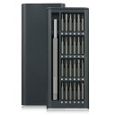 【26in1 精密ドライバー】精密CNC加工した高精度合金鋼ビット採用、素材は一般的な鋼材より強く硬い高強度合金鋼を使用し、耐衝撃、長期防錆、高耐久性などの利点があるため、一定な強度が必要な精密ドライバーに最適な素材です。また、アルミニウム合金製ドライバーホルダーにサンドブラストとアルマイト(陽酸化処理)加工したため、最強の防錆効果と外観を実現し、ベストの状態で長くご使用いただけます。【多種多様な修理作業に対応】多機能ドライバーセット− iPhone, MacBook, iPad, Nintendo Switch, PS4, PS5, Xbox, PC,HDD,コンピューター,メガネ, 時計, タブレット, スマートフォン, パソコン,ラップトップ,おもちゃ,カメラ,ラジオ,ゲーム機などの分解・修理は、これ1つの修理工具セットで解決できます。【種類豊富なビットセット】24種類のビットで一般電化製品の分解・修理に対応可能です。トルクス:T2 , T3 , T4;トルクス(穴付き):TR5 (T5H) , TR6 (T6H) , TR8 (T8H) , TR9 (T9H) , TR10 (T10H);Y字型:Y000 (Y0.6) , Y00 (Y1.5) , Y0 (Y2.5);星型:P2 (0.8mm) , P5 (1.2mm);マイナス:SL1.5 , SL3.0;プラス:PH000 , PH00 , PH0 , PH1 , PH2;六角:H1.5 , H2.0;U型:U2.6;三角:2.3"【至高のコンパクト、小型軽量設計】16*6.5*1.8cmの携帯便利のサイズで、重量僅か190gでどこにでも持ち運びしやすいです。【革新的なスライドカバー設計】片手でもサッと開けやすい。【3点の磁気設計】強力な先端磁気吸着設計:ネジをドライバーの先端(強力な磁石内蔵)に磁気でくってつけネジの落下を防ぎ、簡単に片手でネジを回せるので、とても便利です。マグネット式収納ケース:磁気でビットが固定されてバラバラにならない、簡単に収納できます。【マグネットシート】修理中にネジや小型部品などの紛失を防止するために、マグネットシーツ付属していますので、安心でご修理いただけます。