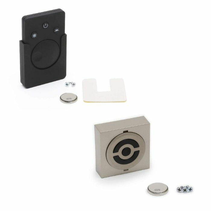 リモコン、ボタン操作 ●光量は10~ 100 %の間で調節できます。 ●ON・OFFスイッチ機能があります。 ●1つのリモコンで複数の調光器を同時に操作できます。 ●電波式リモコンとなるため、障害物を通し遠くから操作できます。 ●電気を消しても最後に調節した光量が記憶されます。 ●携帯リモコンタイプとボタンタイプがあります。操作可能な距離は約15 mです。 【付属品】 ●リモコン、ボタンに電池が付属しています。 【注 意】 ●建築物や構造により、リモコンによる最長操作距離が15 mより短くなる場合があります。 ●受信機(VCR-RAD)は別売りです。 【VCR-RC-BL】 仕様:リモコン 仕上/色: ブラック 【VCR-U-SS】 仕様: ボタン 仕上/色: ステンレス調