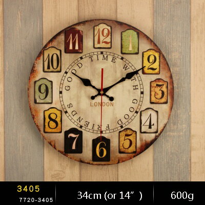 ガーデニング 【3405】ヴィンテージ34cm丸型室内装飾木製壁掛け時計アラビア語番号と仲良しとの楽しい時間ロンドンプリント14インチ時計 【3405】Vintage 34cm Round Home Decor Wooden Wall Clock With Arabic Number and Good Time With Good Friend London Printed 14 Inc